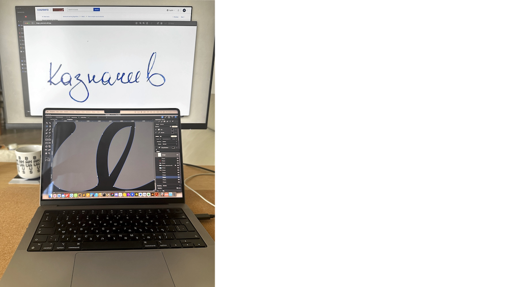 Пятый вариант показался самым подходящим, благодаря характерной «К» и весомой «З». Отрисовали в векторе, внеся ряд правок, не ущемляющих индивидуальность — оставили «З» отдельной, чтобы подчеркнуть естественность письма и лёгкость, а также выровняли линию письма: